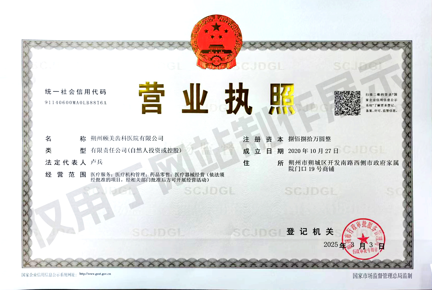 山西頤美口腔醫(yī)療服務(wù)有限公司朔州頤美齒科醫(yī)院始建于1997年,是經(jīng)市衛(wèi)生部門批準(zhǔn)的一所集口腔診療、教學(xué)、放射、檢驗(yàn)、預(yù)防為一體的口腔??漆t(yī)院。總院設(shè)在山西朔州市政府家屬院東門,頤美兒童口腔門診部設(shè)立在朔城區(qū)清水灣售樓部東側(cè)。目前擁有職工50余名,在盧兵院長(zhǎng)的帶領(lǐng)下,始終堅(jiān)持“預(yù)防為主、防治結(jié)合”的工作方針,堅(jiān)持嚴(yán)謹(jǐn)?shù)目茖W(xué)態(tài)度,追求精湛的醫(yī)療技術(shù),全心全意為廣大患者解除各種口腔疾病的困擾,營(yíng)造舒適和諧的就醫(yī)氛圍。